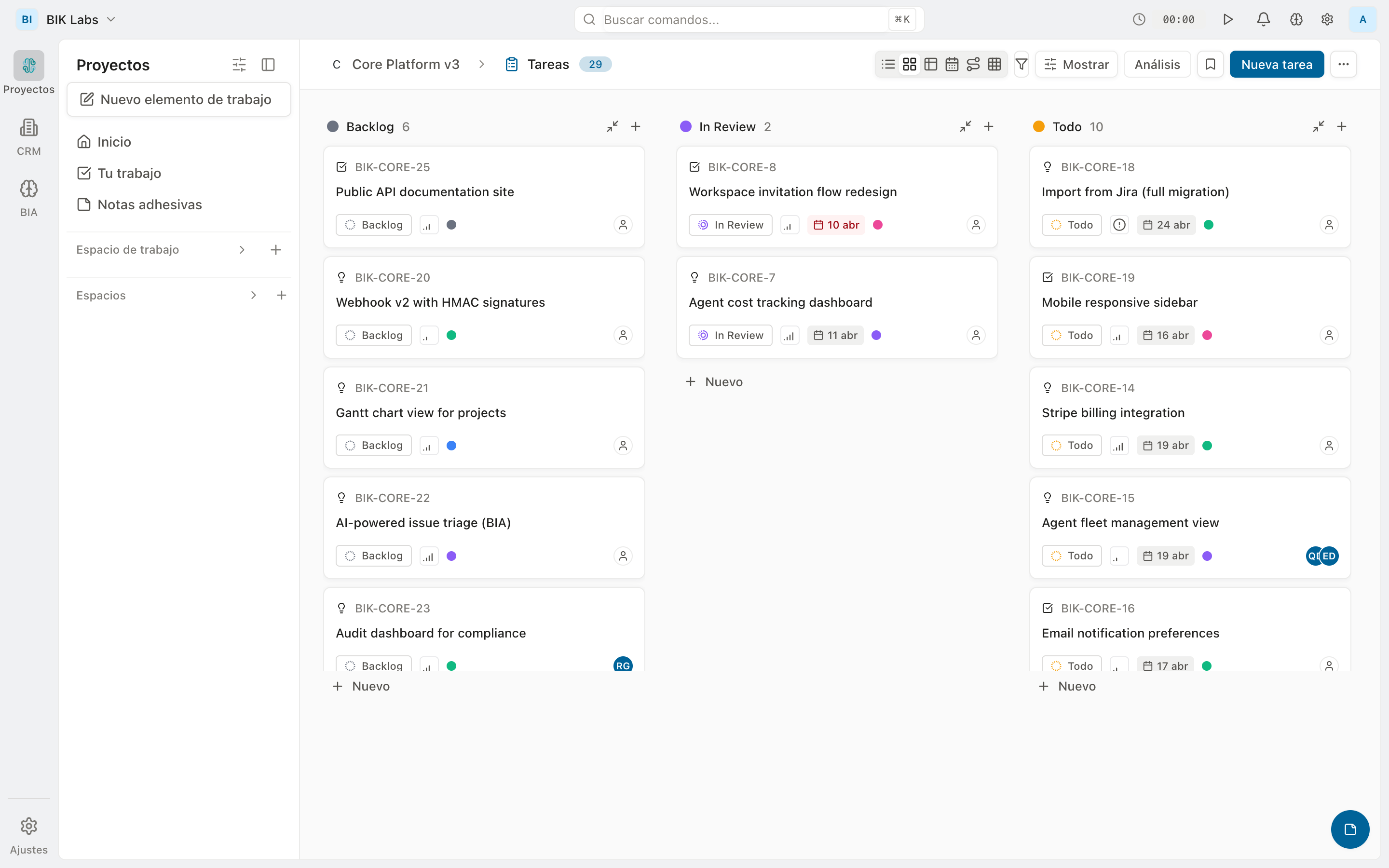 curl https://api.biklabs.ai/v1/projectsAPI docs →Agents don't count as seats.