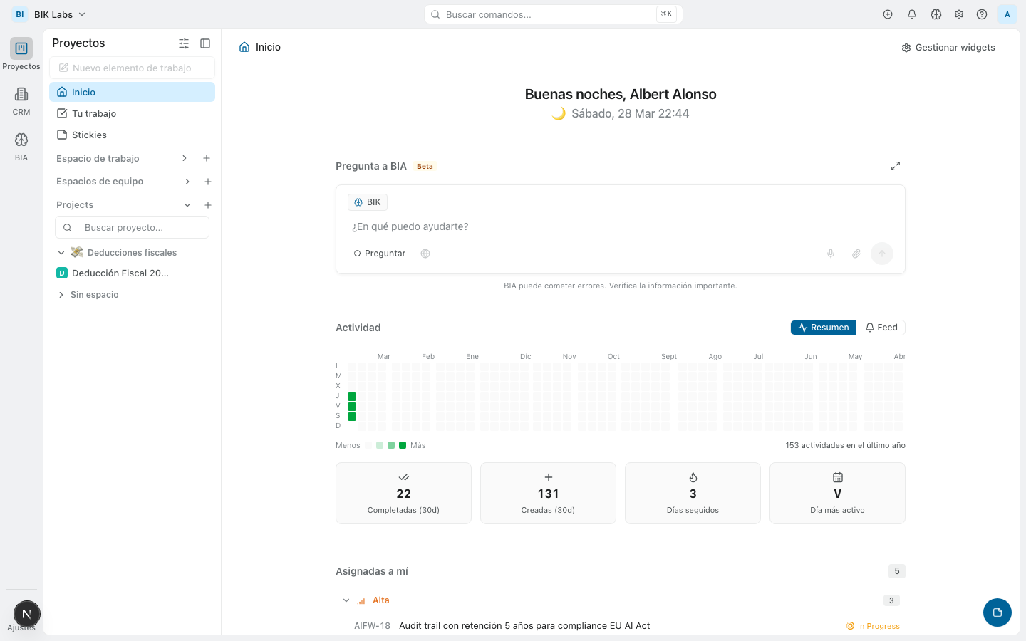 Proyectos, CRM, documentación y agentes IA en un workspace. Un solo sitio para todo. Sin pagar por 8 SaaS diferentes cuando sois 5 personas.